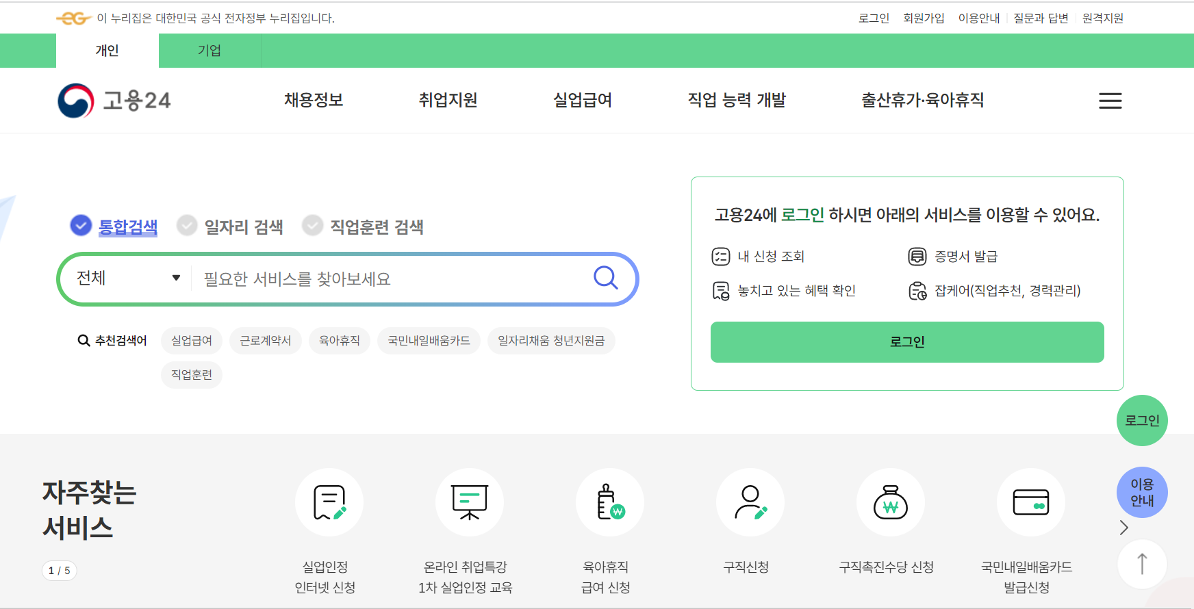 - 고용노동부의 공식 홈페이지에 접속하여 회원가입을 합니다.