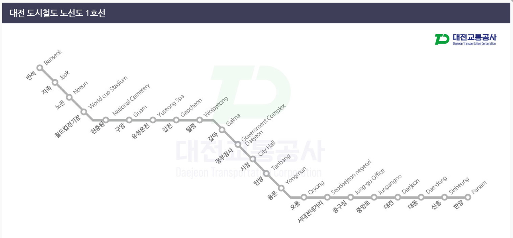 대전지하철은 대전광역시의 주요 대중교통 수단으로, 현재 1호선이 운행되고 있고 2호선이 진행중에 있습니다.