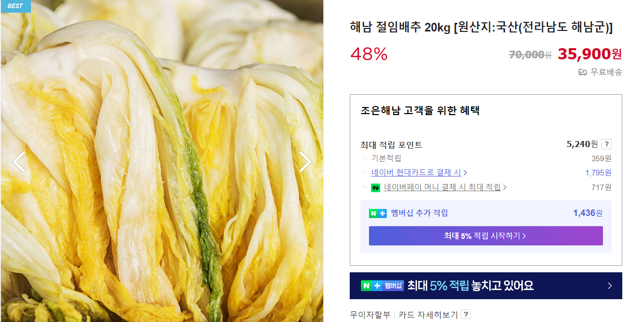 - 해풍맞고 자란 100% 국내산 배추