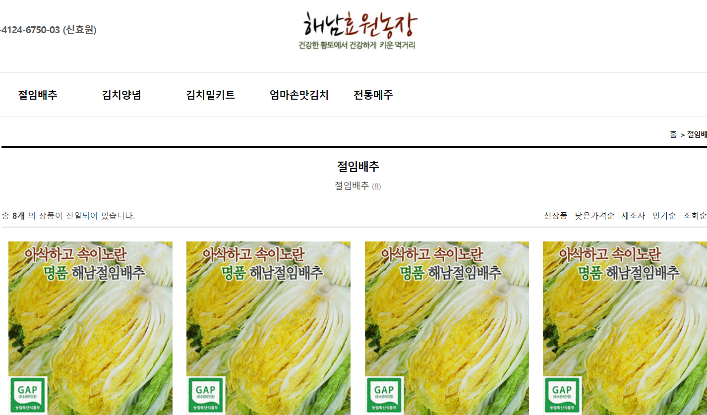 해남에서 배추를 생산하는 업체 가격비고하고 예약하세요.