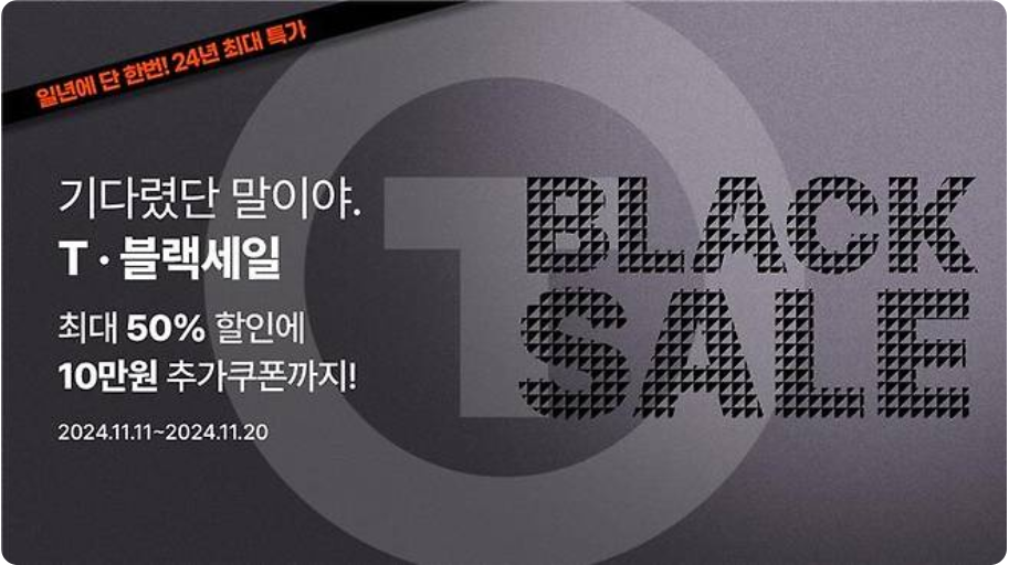 T블랙세일은 특정 기간 동안 진행되는 대규모 세일 이벤트로, 다양한 브랜드의 제품을 할인된 가격에 구매할 수 있는 기회를 제공합니다. 이 행사에서는 전자제품, 의류, 뷰티 제품 등 다양한 카테고리의 상품이 포함되어 있어 소비자들에게 많은 인기를 끌고 있습니다.